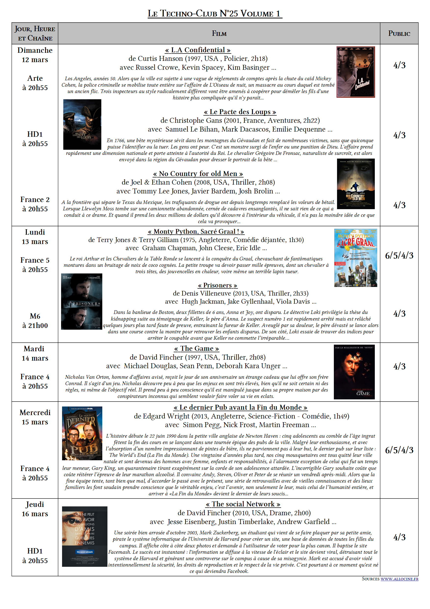 Mon objectif n’est bien sûr absolument pas de cautionner le visionnage de la télé à des heures tardives, je sais bien qu’il existe assez de moyens actuellement pour revoir ou enregistrer les films qui passent sur les chaines de télévision. Je me permets de retranscrire ci-dessous le texte accompagnant chaque semaine l’affiche :